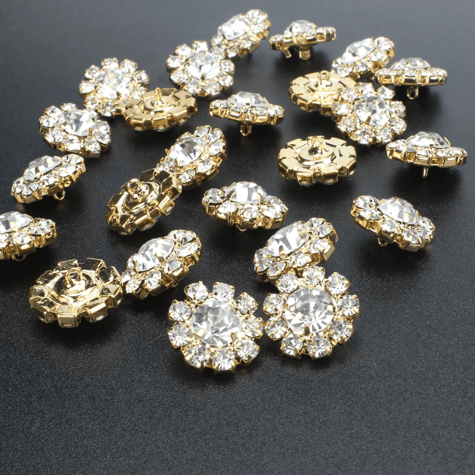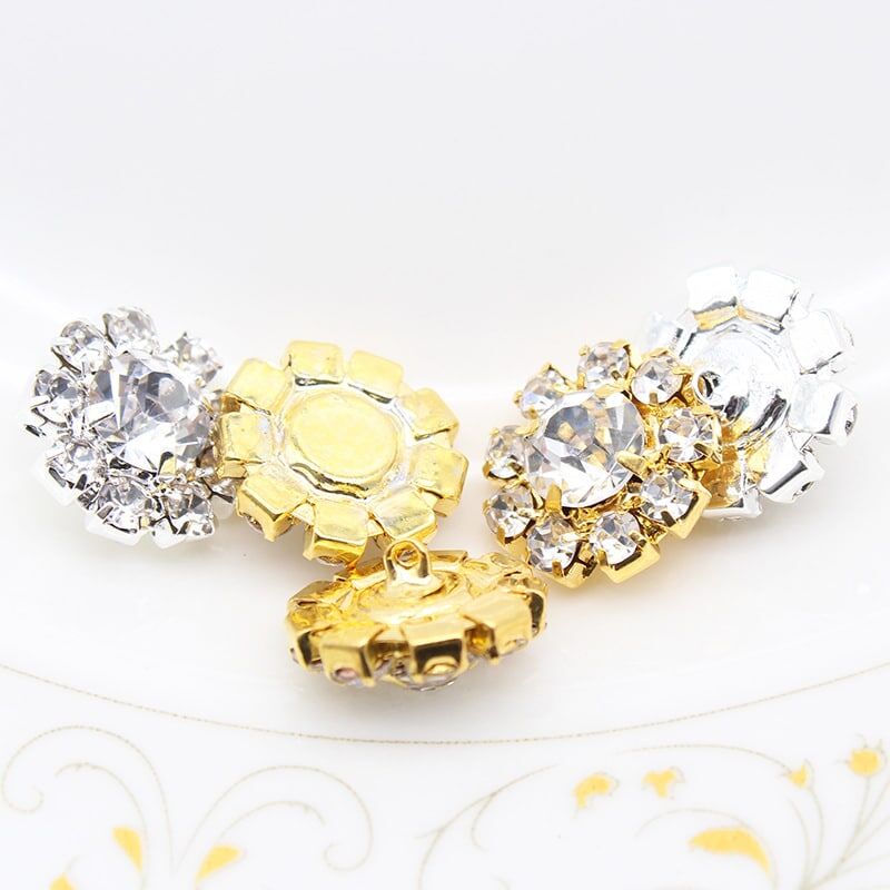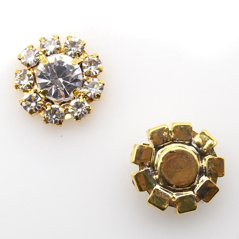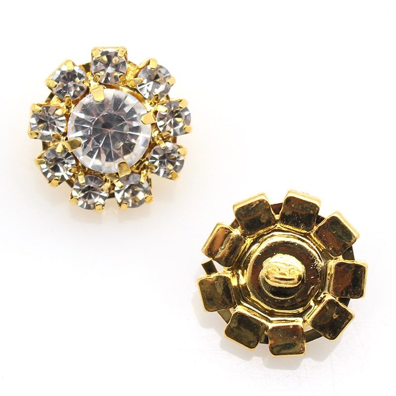 Gold color back ,each button made of 9 small Clear crystals + 1 big crystal + brass Bottom bracket