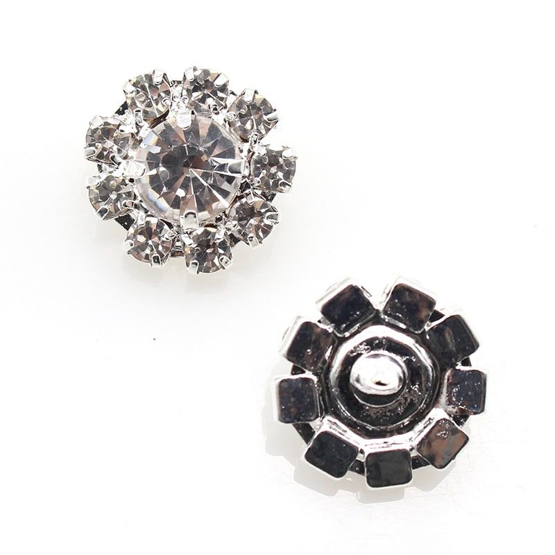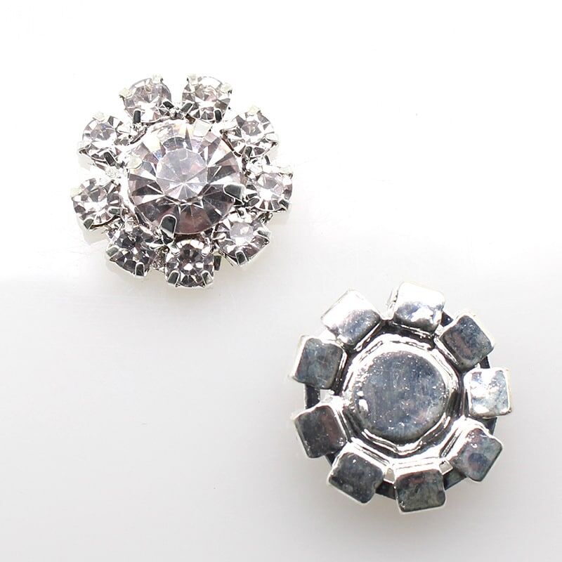Silver color back ,each button made of 9 small Clear crystals + 1 big crystal + brass Bottom bracket